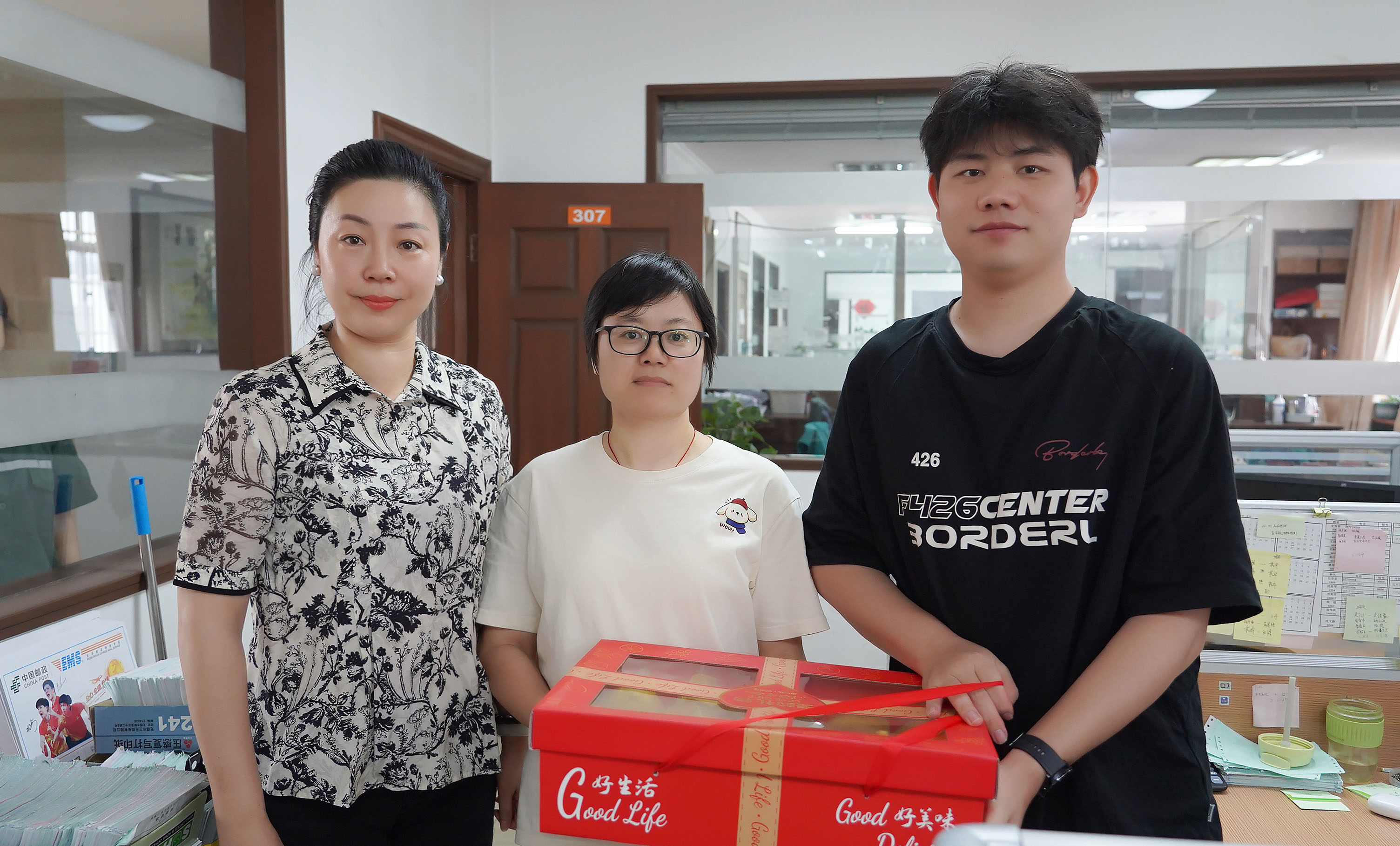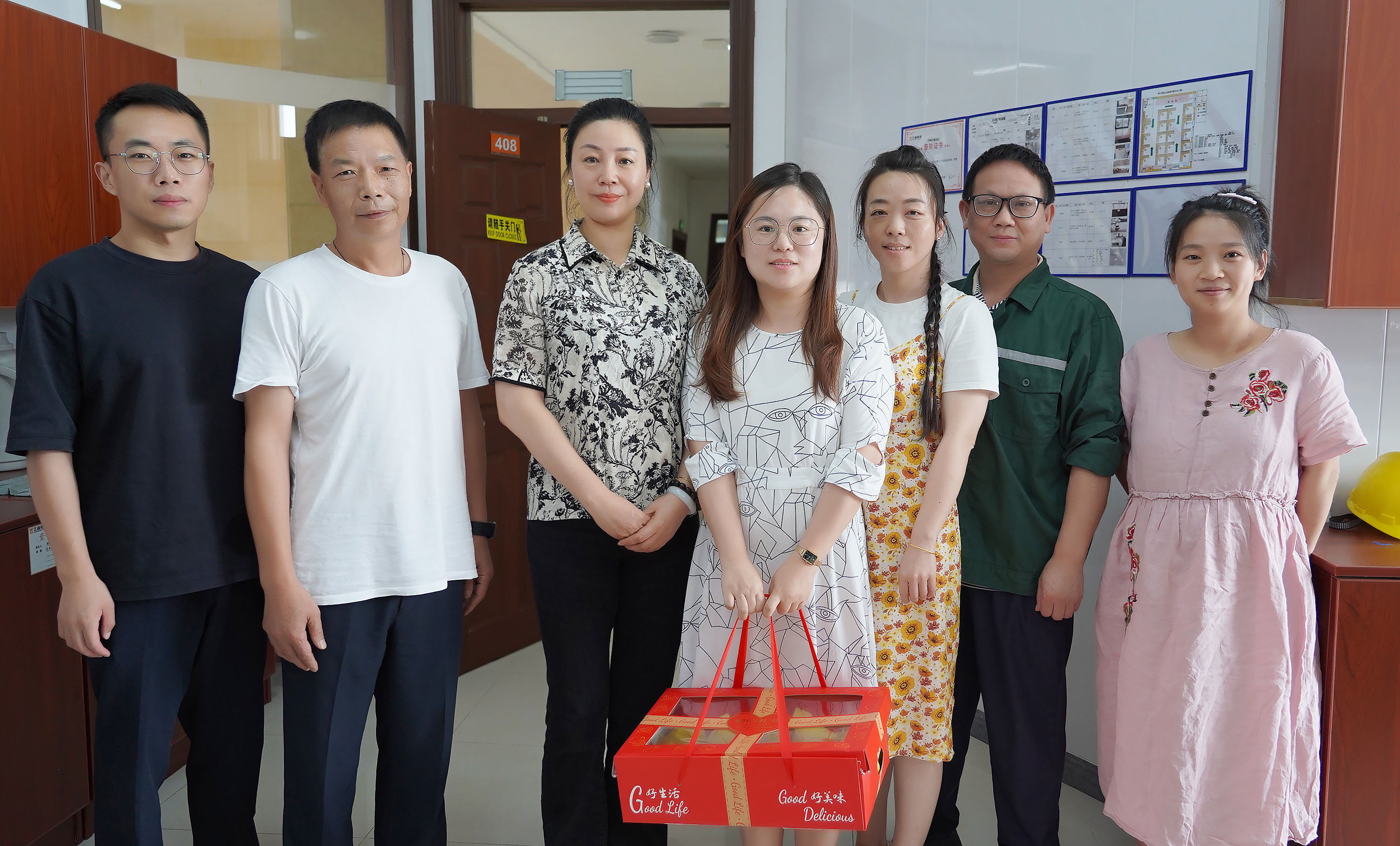 運(yùn)營(yíng)總經(jīng)理蔣君西、副總經(jīng)理芮一云、總經(jīng)理助理胡亞紅赴辦公樓送清涼