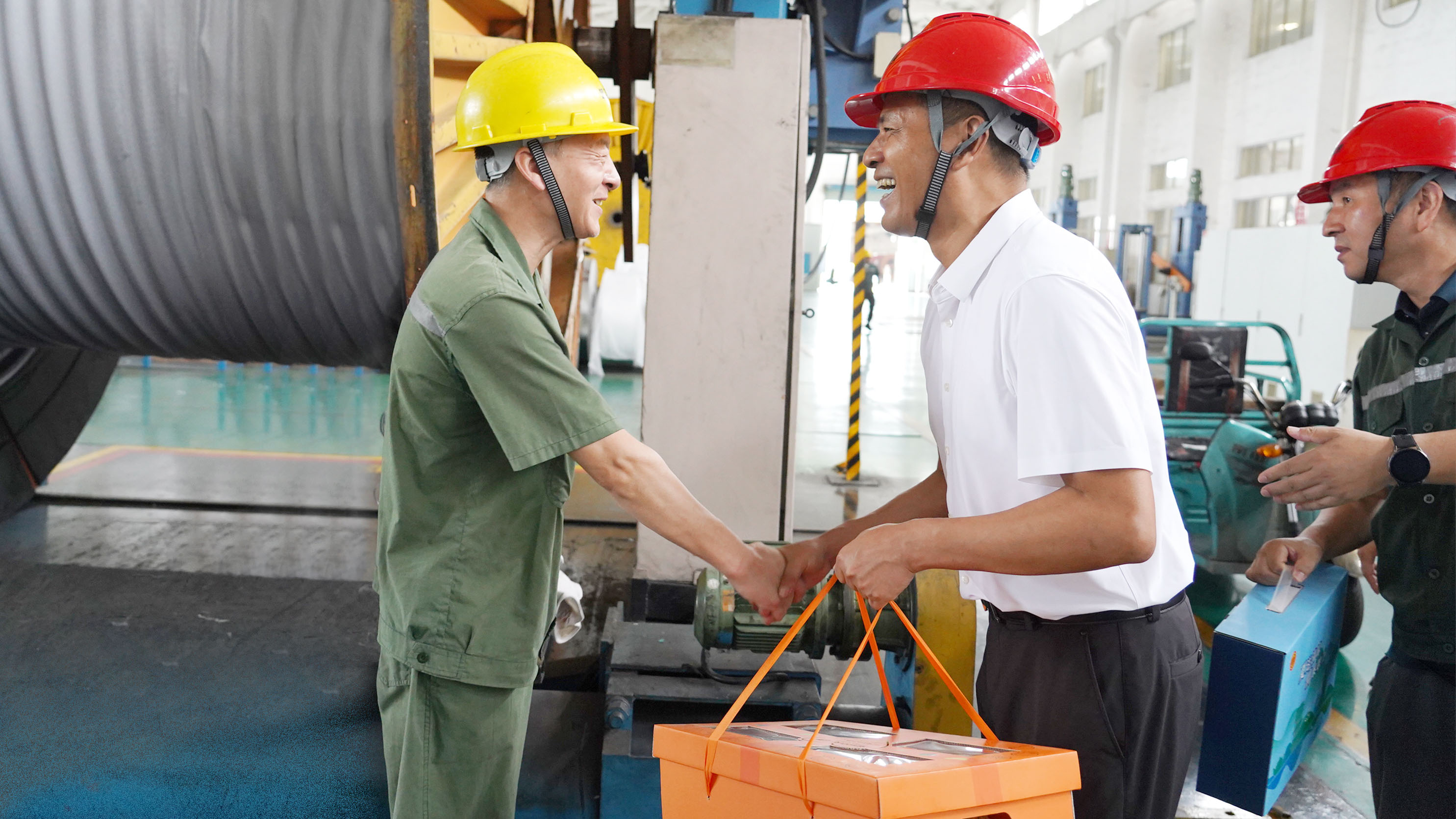 集團(tuán)董事長(zhǎng)儲(chǔ)輝、運(yùn)營(yíng)總經(jīng)理蔣君西赴中高壓電纜分廠送清涼