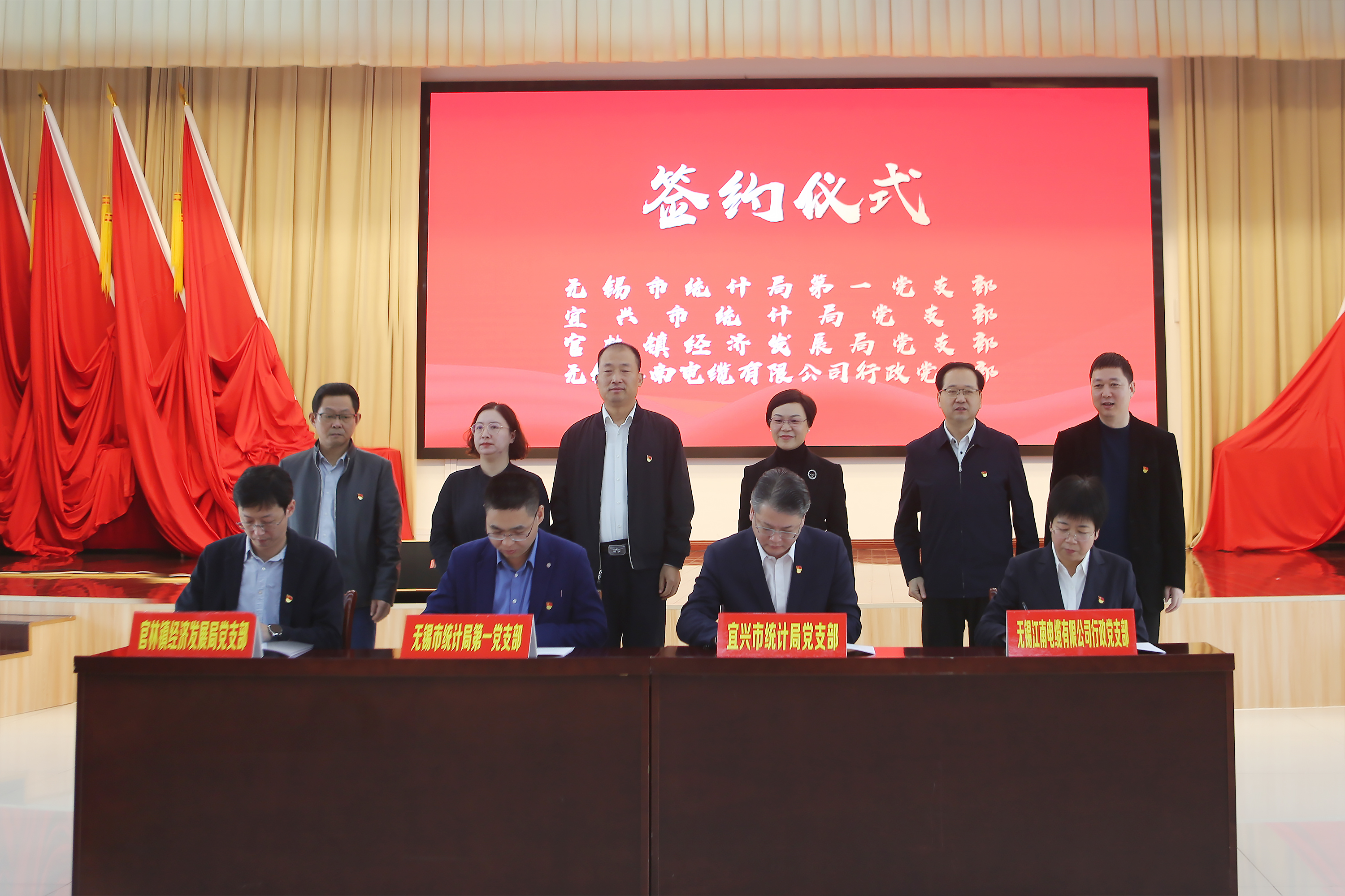 In order to thoroughly study and implement the spirit of the 20th National Congress of the Communist Party of China (CPC), and promote the work of the Party Building Alliance to achieve new breakthroughs under the leadership of Party building. On November 25, the First Party Branch of Wuxi Municipal Bureau of Statistics, the Party Branch of Yixing Municipal Bureau of Statistics, the Party Branch of Guanlin Town Economic Development Bureau and the Party Branch of Jiangnan Cable Administration jointly formed the "City-County-Town-Enterprise" four in one, and counted the "Party Building Business Alliance".